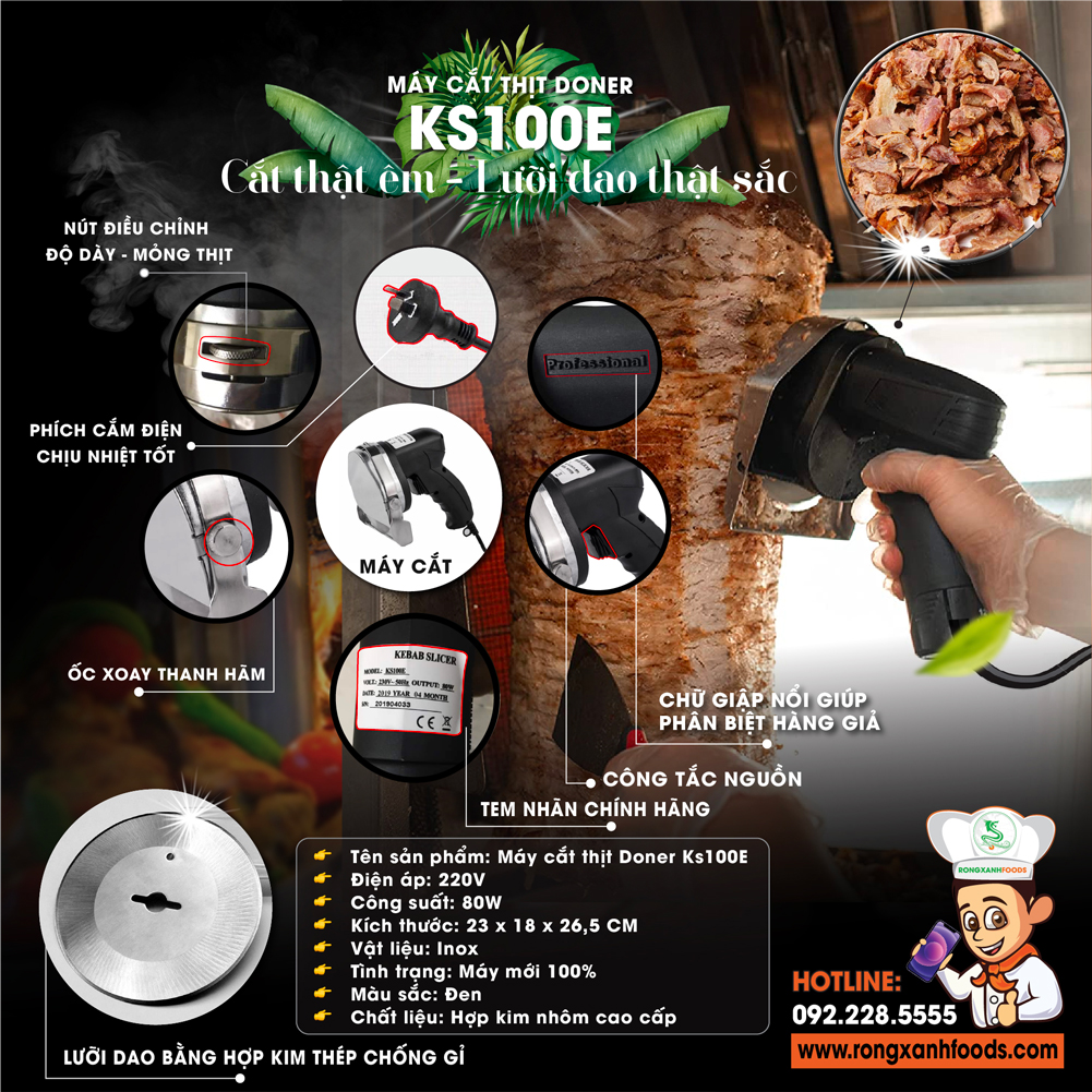 🍀Tên sản phẩm: Máy cắt thịt Doner kebab Ks100E