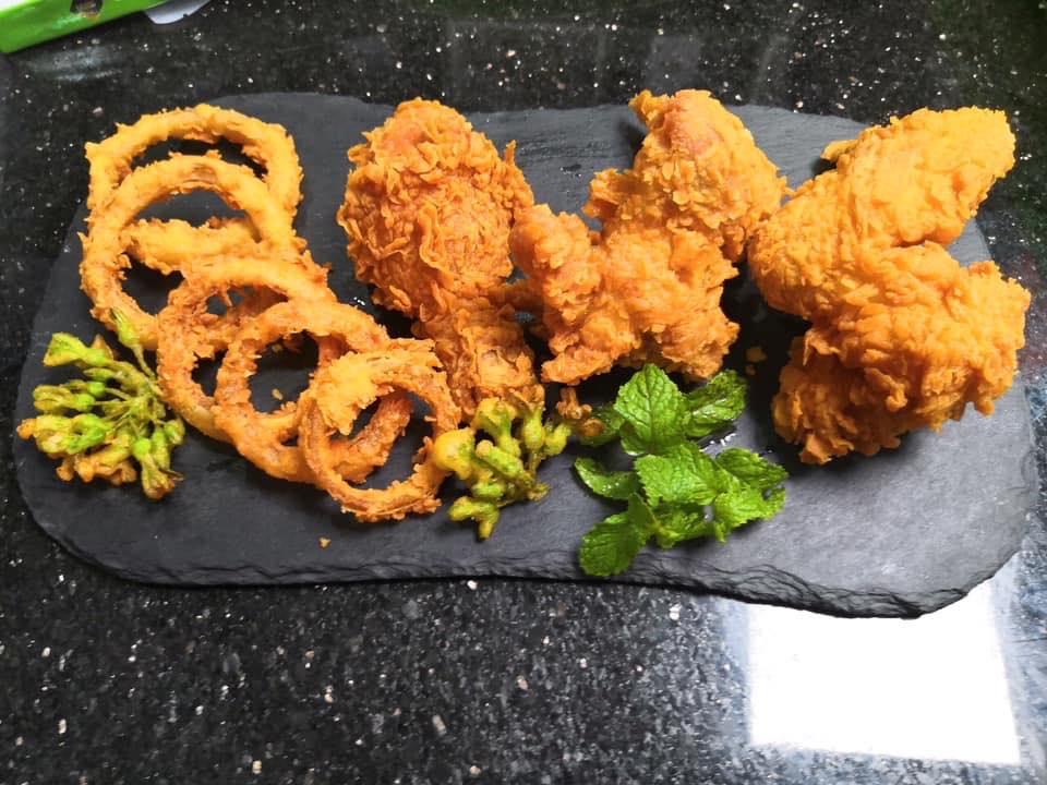 * Ngoài chiên gà, cá, thịt, tôm hải sản…Bột chiên Karaage còn chiên được đậu non và tất cả các loại ra củ quả…